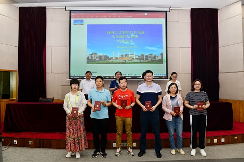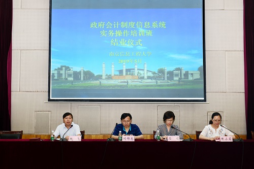 5月31日上午, 政府会计制度信息系统实务操作2019年第二期培训班在长望楼报告厅举行结业仪式。南京信息工程大学副校长闵锦忠,中国气象局财务核算中心核算二室主任石丽, 继续教育学院副院长赵飞和全体学员出席了结业仪式。仪式由自考与培训办公室主任陈小菊主持。
