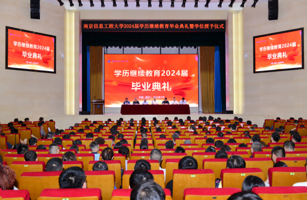 7月27日上午,南京信息工程大学2024届学历继续教育毕业典礼暨学位授予仪式在校本部大礼堂隆重举行。校党委常委、总会计师胡明保,南京钢铁股份有限公司人才发展中心主任仲崇波出席仪式。继续教育学院全体院领导,前锦校外教学点负责人,教师代表、班主任代表以及427名毕业生参加典礼。典礼由学院党总支副书记章胜主持。