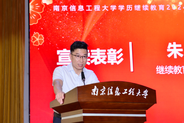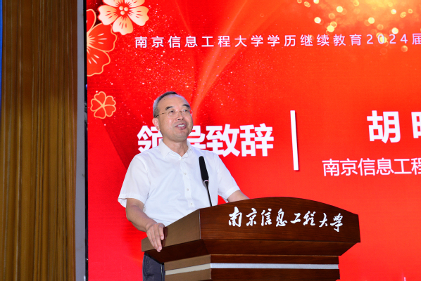 毕业典礼在雄壮的国歌声中拉开帷幕。总会计师胡明保代表学校向毕业生们表示衷心的祝贺,肯定了2024届毕业生不断进取、坚韧不拔的精神。他说,近年来南信大发展迅猛,聚焦“一流特色研究型大学”战略目标,在人才培养、科学研究等方面成绩喜人。党的二十届三中全会对深化教育综合改革做出了战略部署,南信大人才培养要立足服务地方、行业和企业发展需求,学历继续教育作为终身教育体系的重要组成部分,要致力于促进个人全面发展和社会全面进步。他希望全体毕业生发扬“开放、创新、硬核、担当”的信大精神,始终坚持终身学习,勇于创新、敢于突破,做一名对社会有用之才。