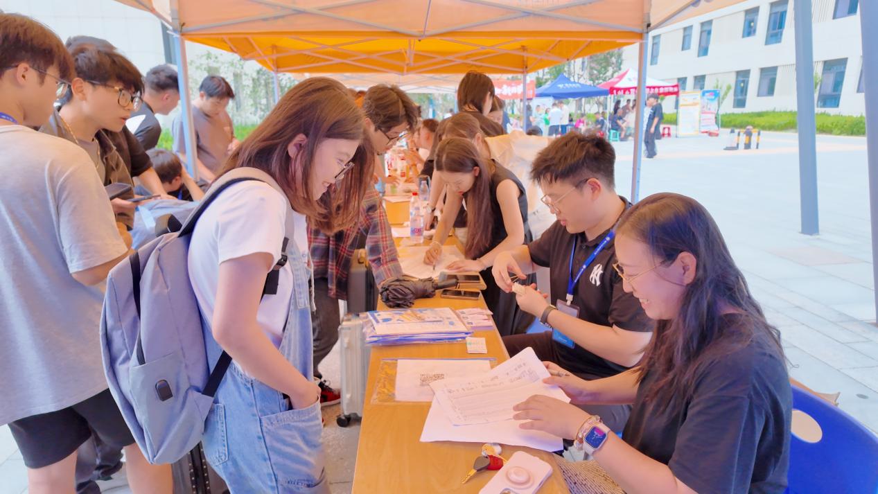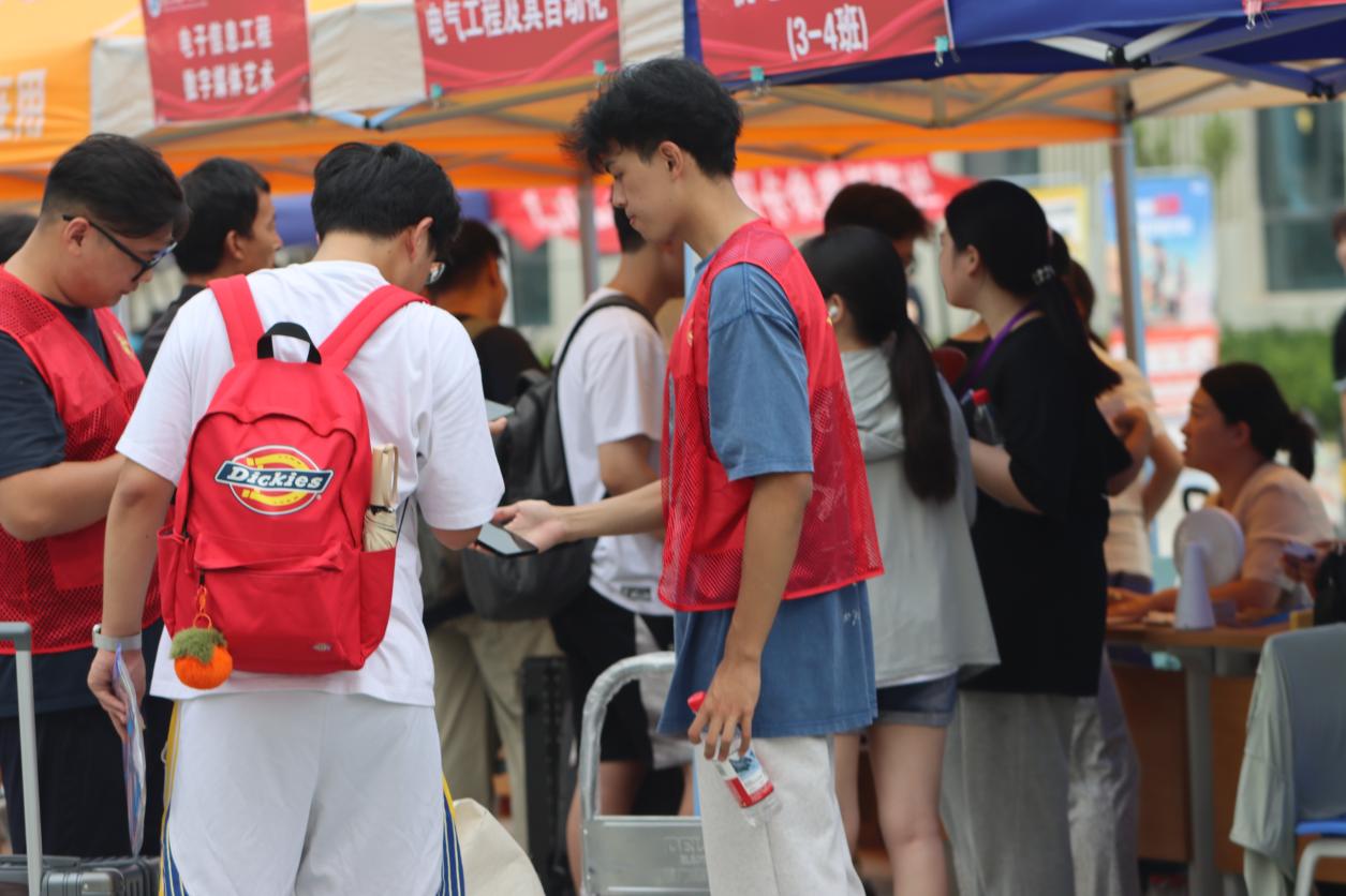 迎新现场热闹非凡且秩序井然。为确保迎新工作高效推进,学院提前谋划、周密部署,制定了详尽的迎新方案,并组建了一支由教师、辅导员及充满青春活力的学生志愿者组成的专业迎新团队。从地铁站的暖心接引、校园内的细致导览,到报到注册的高效办理、宿舍入住的贴心协助,团队全程提供“一站式”精准服务,全方位护航新生入学路。后勤部门全力护航迎新。校园环境洁净、设施齐全、食堂菜品丰富。此外,安保人员全天候巡逻,水电维修 24 小时待命,为新生营造安全舒心的环境。