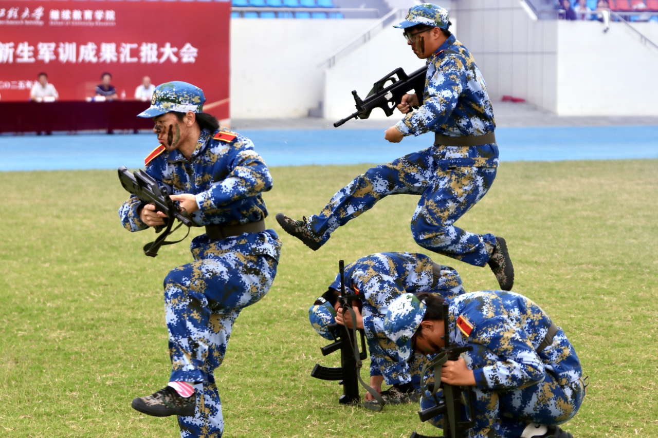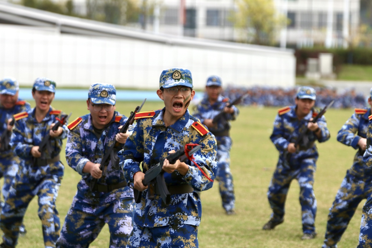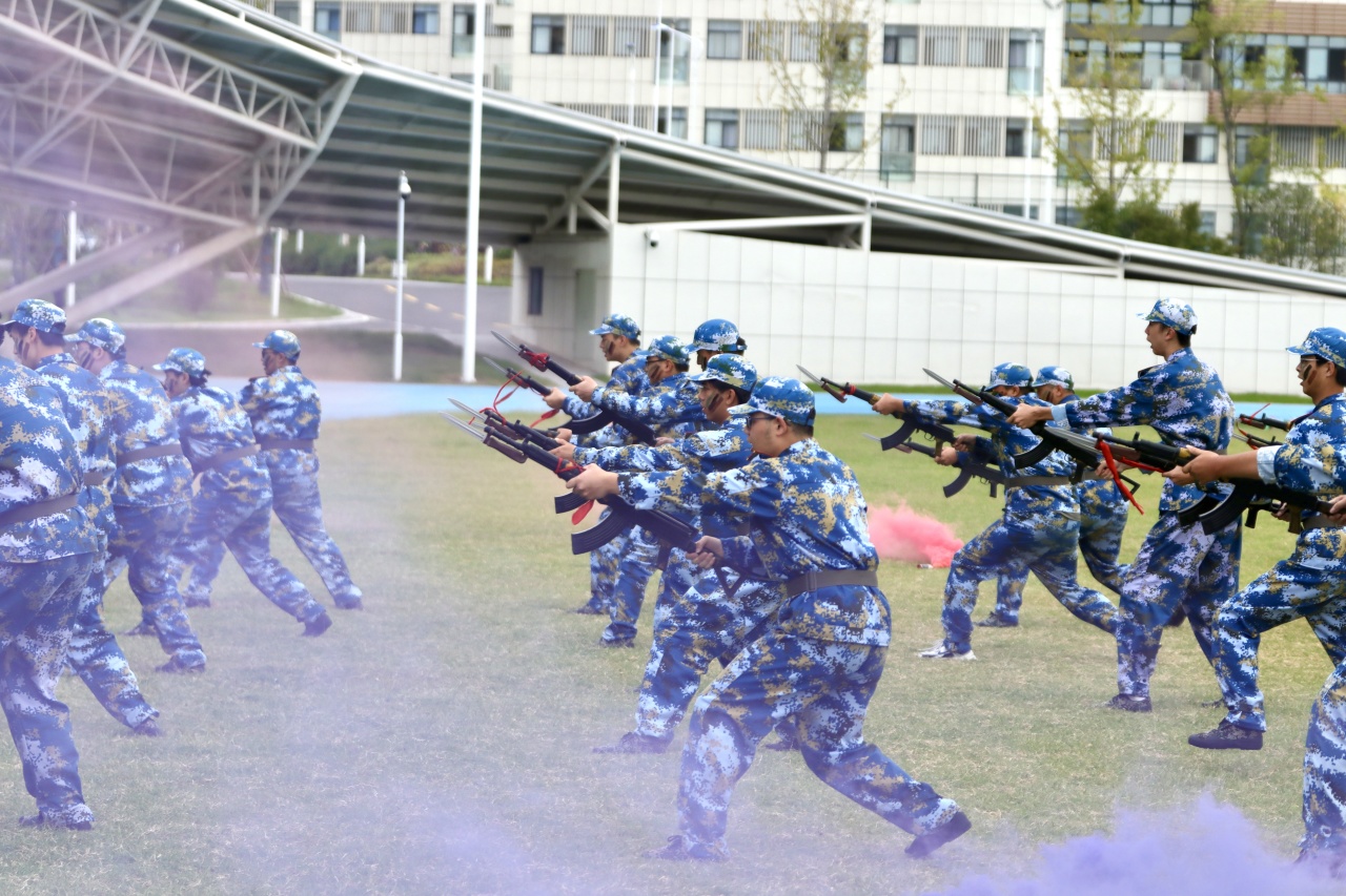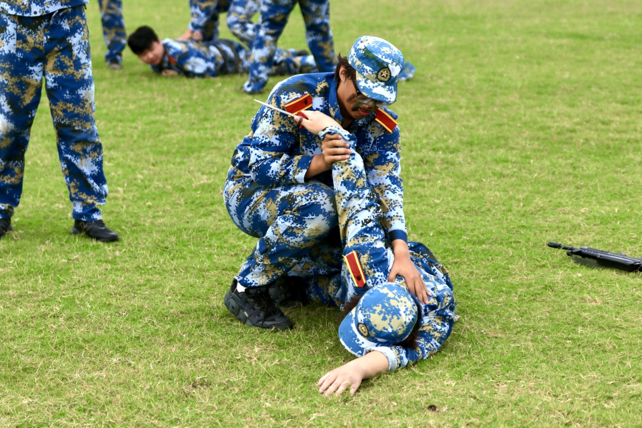 随着白光志副部长下达指令,军训成果汇报正式开启。分列式方阵依次走过主席台,步伐铿锵、摆臂统一,每一步都彰显着十天训练的扎实成果;战术展示环节,匕首操利落干脆,刺杀操喊声震天,弓步冲拳、转身格挡动作整齐有力,新生们用从生疏到熟练的蜕变,赢得现场阵阵掌声。