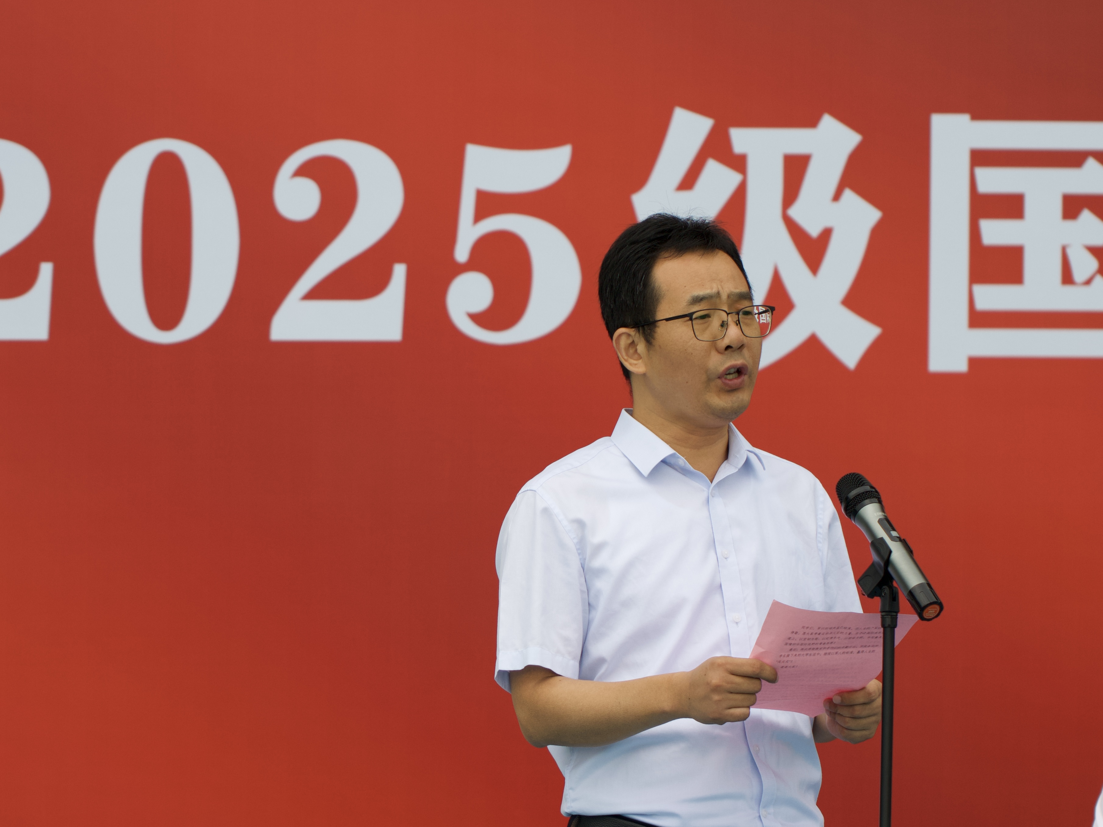 汇报结束后,章胜副书记致辞。他向辛勤付出的教官致以崇高敬意,为圆满完成军训的新生点赞,强调军训既是青春 “成人礼”,更是国际本科学习的 “奠基课”,并寄语新生:以军训 “韧劲” 化作治学 “钻劲”、以 “规矩” 作为行事 “标尺”、以 “合力” 成为拓视野 “动力”,为成长为具有国际视野的人才筑牢根基。
