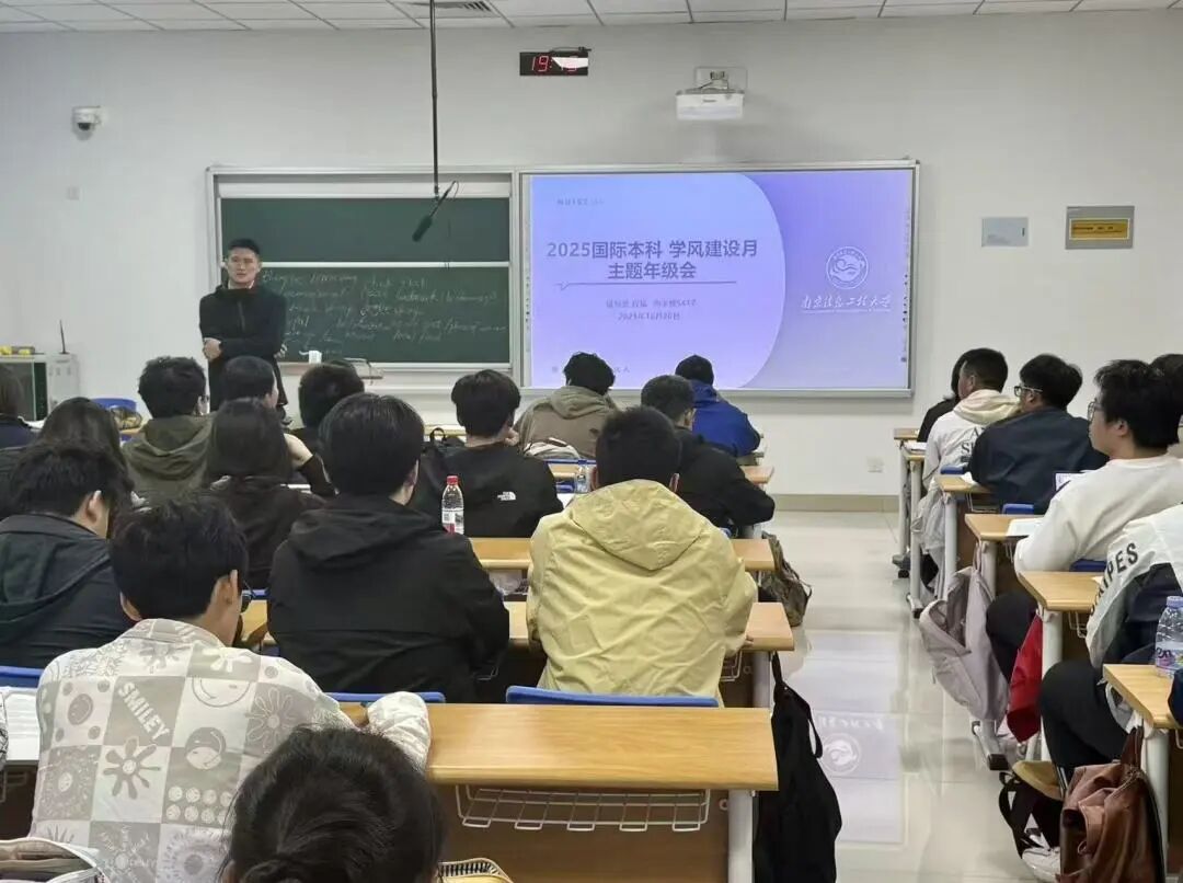25 级国际本科工科&教育专业在尚学楼 S417 召开 “学风建设月” 主题班会,辅导员程猛主持,围绕三大核心议题深化学风与行为管理。学风建设方面,结合国际本科课程特点,明确课堂纪律、自习安排、作业规范三类核心要求;园区骑行安全方面,详细解读安全规定,划定严禁行为边界,说明监督机制与违规处理办法,组织签署《安全骑行承诺书》;文明守纪教育方面,从禁烟管理、公共秩序维护、违章电器禁用、作息规范四维度提出要求,助力树立国际学子良好形象。