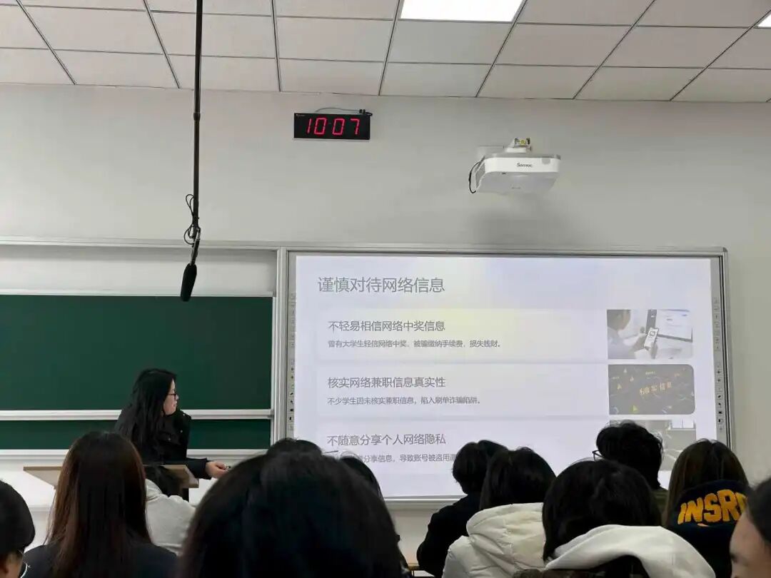 为响应园区反诈号召及学院反诈工作安排,进一步强化学生反诈辨别能力、推动防护机制常态化,国际本科各年级近期集中开展网络反诈专项教育,切实守护学生财产安全与线上生活安全。