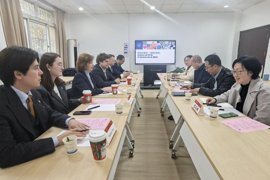11月21日,国家研究型高等经济大学一行来院座谈交流,商讨国际本科项目共建事宜。国家研究型高等经济大学国际处处长Maria Kiselev、学位项目处处长Aleksandr Pirogov,我校继续教育学院党总支书记章胜出席座谈会,副院长施威主持会议。