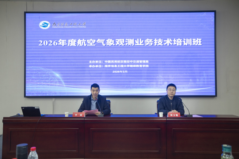 3月24日,由中国民用航空局空中交通管理局主办、我校承办的2026年度航空气象观测业务技术培训班在文德楼N301报告厅正式开班。继续教育学院院长李磊出席开班仪式并作开班致辞,会议由继续教育学院培训中心主任周文魁主持。